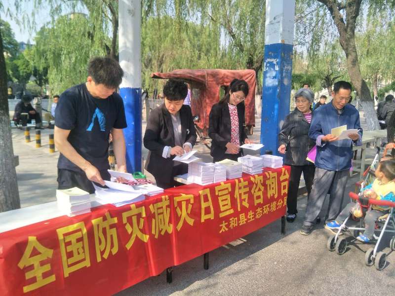 5月10日,阜阳市太和县生态环境分局按照太和县防灾减灾委员会的统一安排,在该县文庙广场开展“2019年防灾减灾日”宣传活动。
