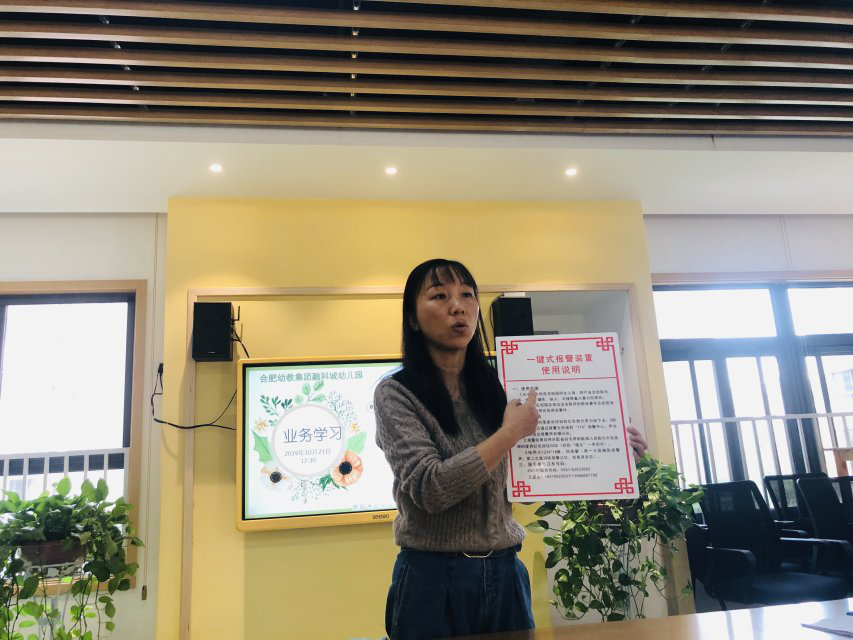 接下来,李莉园长向老师们介绍了一键式报警器,并且亲自示范使用。通过使用操作视频的展示,教师们直观的学习到一键式报警器的正确使用方法。一键式报警器,能让教师们在危难之际,快速报警,随时做好保护孩子安全的准备,筑牢幼儿园的安全防线。 最后,通过教师对灭火器的使用演练,教师们掌握了灭火器的正确使用方法,增强了教师们的消防安全意识,提高了自防自救及火灾突发时的应急处理能力。