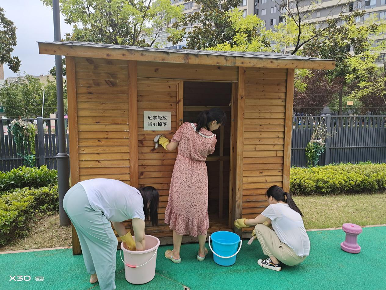 幼儿园是孩子生活与游戏的场所,卫生消毒工作是幼儿园卫生工作的重点。面对疫情,幼儿园要重点做好园舍环境卫生整治工作。8月21日,后勤人员对幼儿园室内外玩具及大型体育器械进行清理,擦拭,暴晒,消毒工作,对幼儿园各个活动室、角落进行了整理、打扫、全面消毒,不留死角,让幼儿园呈现了一片洁净清新的面貌,为孩子的入园提供了卫生安全保障。最后,何园长带领安全小组成员对园内及周边进行了“拉网式”安全隐患大排查活动。