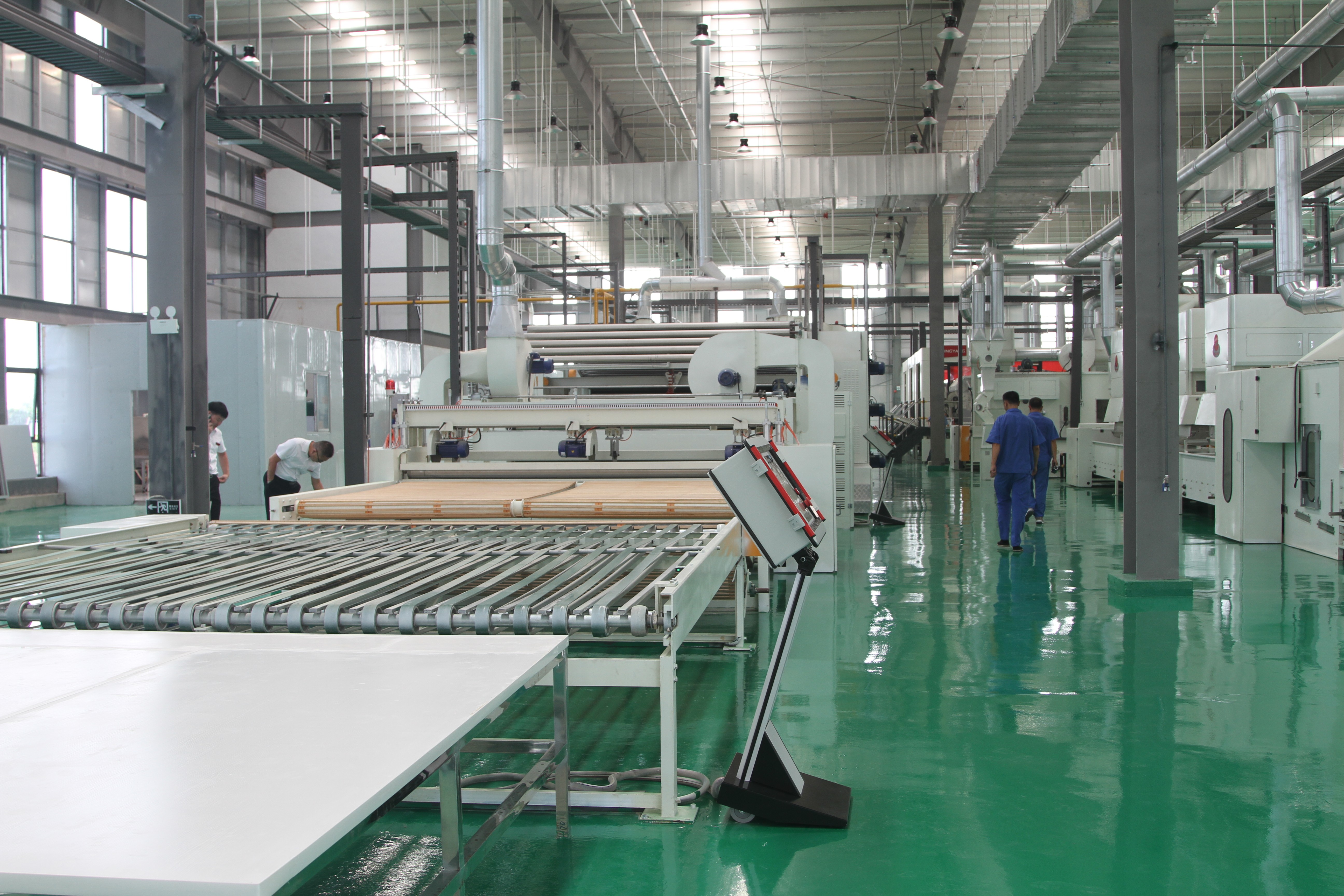 作为传统支柱产业,纺织工业在我国经济发展中占据重要位置。随着新一代产业革命和技术革命,纺织工业也迎来了加速向高质量迈进的新阶段。 位于阜阳市的吉祥三宝高科新材料有限公司(以下简称“吉祥三宝”)自2017年成立以来,便以创新者和引领者的姿态,聚焦功能性纺织材料的研发与应用,在民用、医疗防护、应急等领域脱颖而出,迅速成长为行业瞩目的“黑马”。 近日,走进吉祥三宝生产车间,全封闭320型保暖絮片生产线正在机器轰鸣声中满负荷运转。 “这条百余米长的生产线是保暖服、防寒服核心材料的生产源头。”企业相关负责人介绍,公司每天可产出2.4万米长的絮片,产品销往山东、四川、江苏等地。